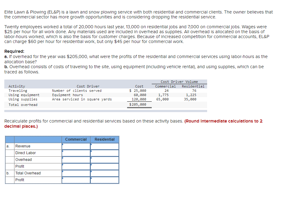 Solved Elite Lawn 8 Plowing El Amp P Is A Lawn And Snow Plowing Service With Both Residential And Commercial Clients The Owner Believes That Th Course Hero